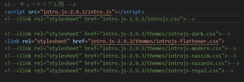 intro.jsをダウンロードしたら、「themes」フォルダにcssが6種入ってたので、introjs.cssの代わりに適用してみます。代わりにというか、単体だと動作しなかったので、introjs.cssに追加の形で。 コメントアウトしてますが、下の6つが、themesフォルダに入っ…
